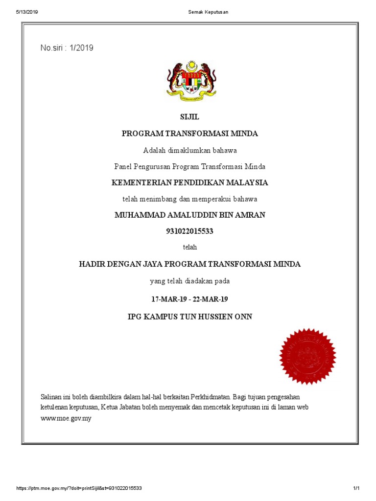 Sijil Program Transformasi Minda / We did not find results for:. Maybe you would like to learn more about one of these? Check spelling or type a new query. We did not find results for: